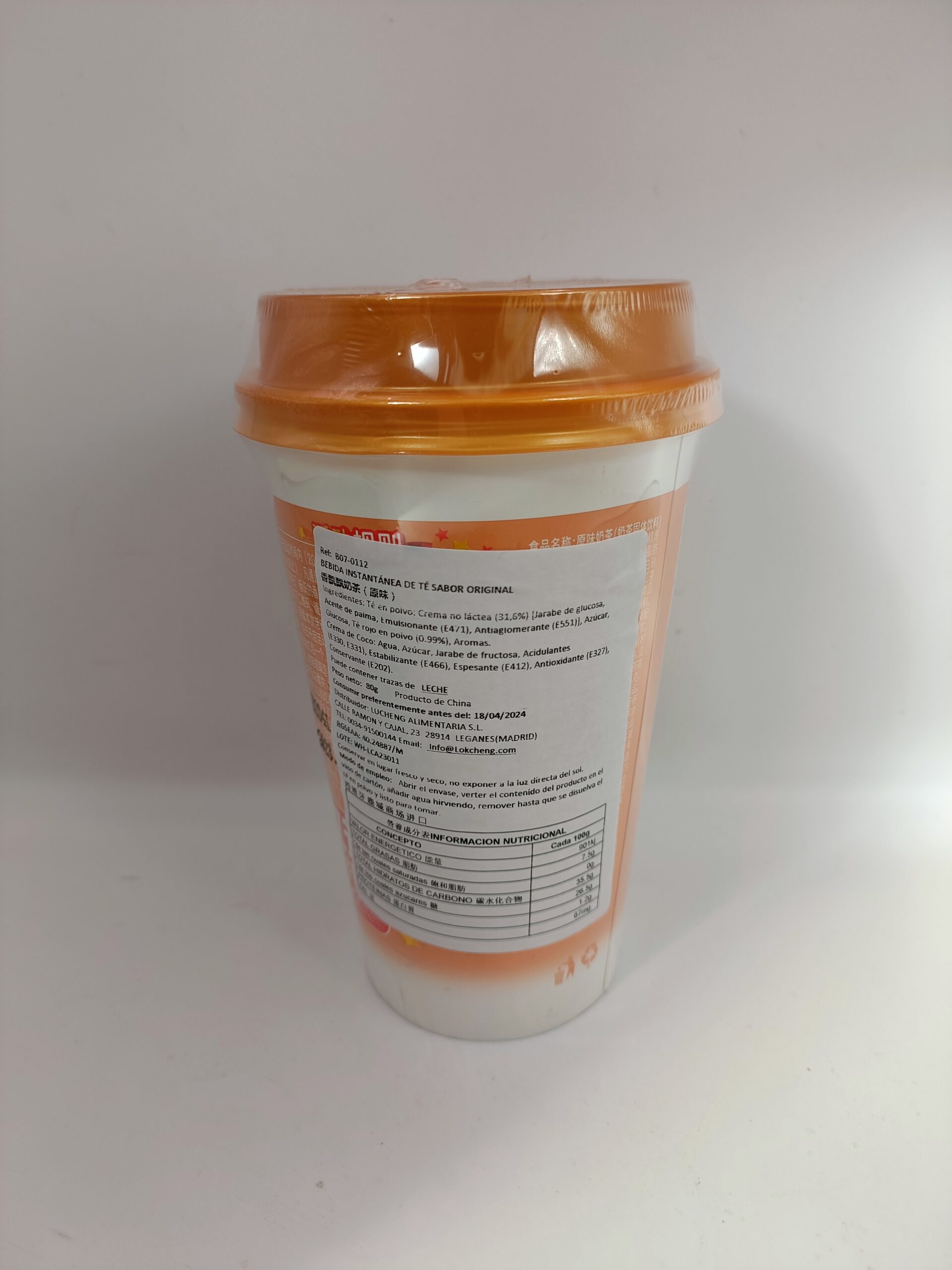 Ingredientes: Paquete de té con leche en polvo: crema (jarabe de glucosa, aceite vegetal refinado, caseinato de sodio, emulsionante E471, acidulante E340, antiaglomerante E551, azúcar, glucosa, leche desnatada en polvo, té negro instantáneo en polvo, semillas de cassia en polvo, proteína de suero de leche en polvo, estabilizante E543, aroma de trigo 0.73%. Paquete con azúcar. Paquete de guarnición: agua, nata de coco, jarabe de fructosa, azúcar, glucosa, acidulantes (E330, E331), estabilizante E466, espesante E412, antioxidante E327, conservante E202.