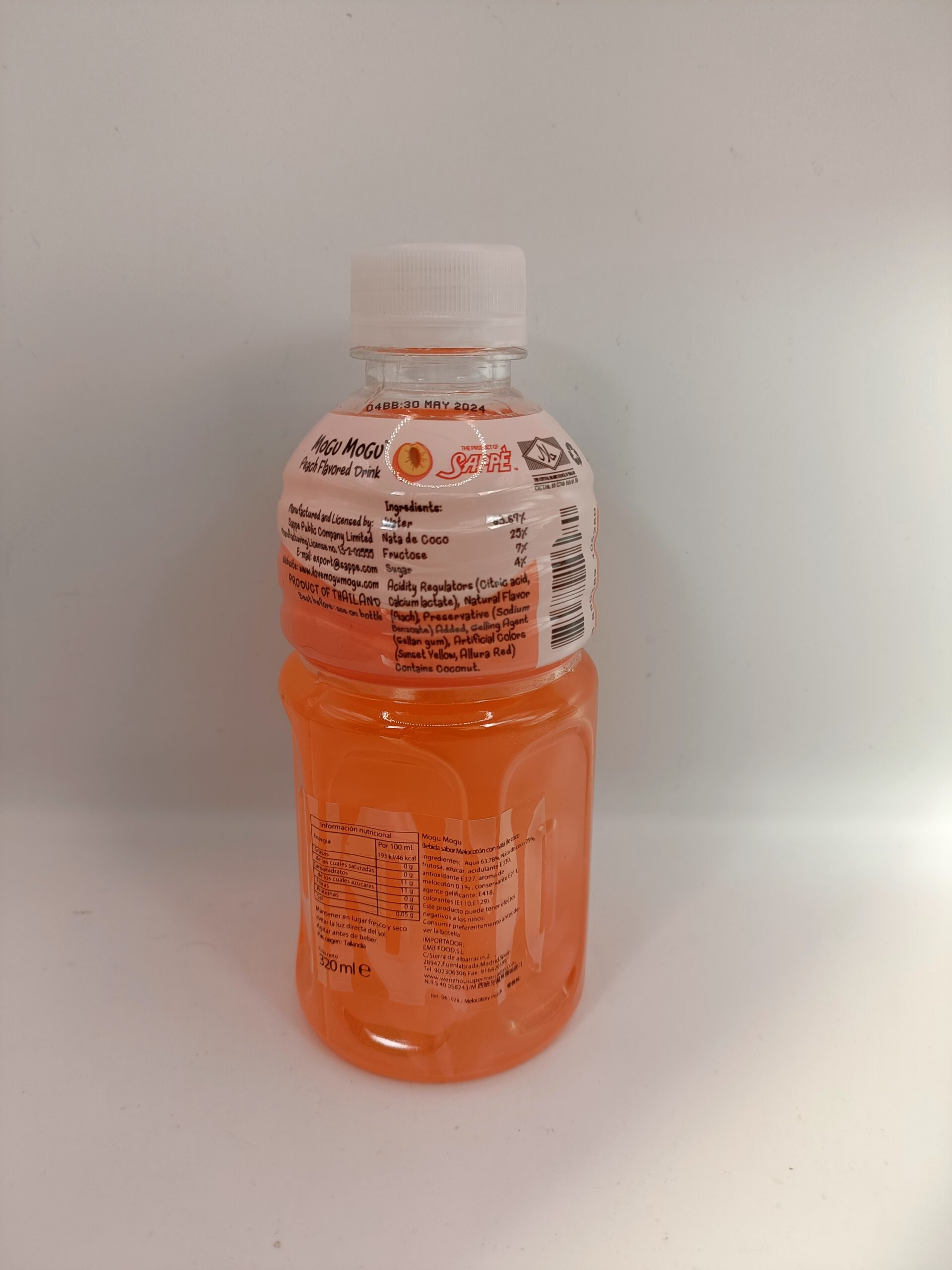 Ingredientes: Agua, nata de coco 25%, fructosa, azúcar, regulador de acidez E330 (ácido cítrico), aroma de melocotón (aroma natural), conservante E211 (benzoato de sodio), colorante E129 (rojo allura) y E110 (amarillo ocaso).